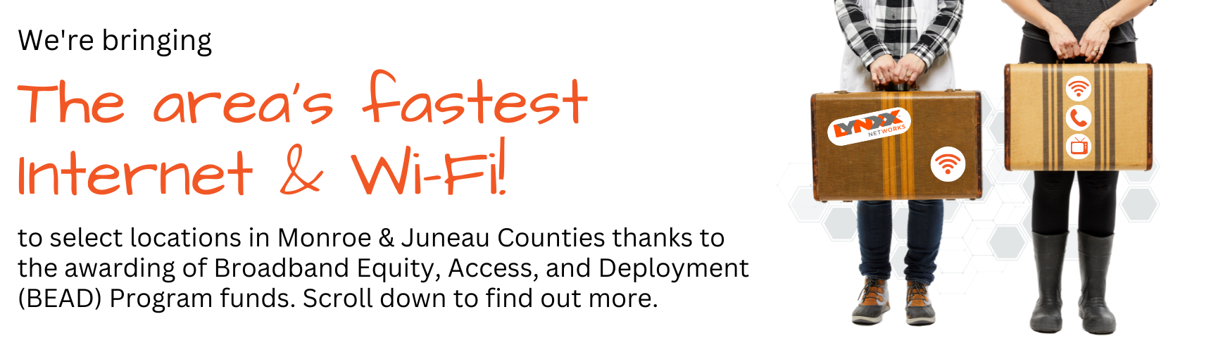 We are excited to announce that Lynxx Networks has been awarded grant funds through the Broadband Equity, Access, and Deployment (BEAD) Program to expand fiber-optic internet services to 1,102 locations in Juneau and Monroe counties.